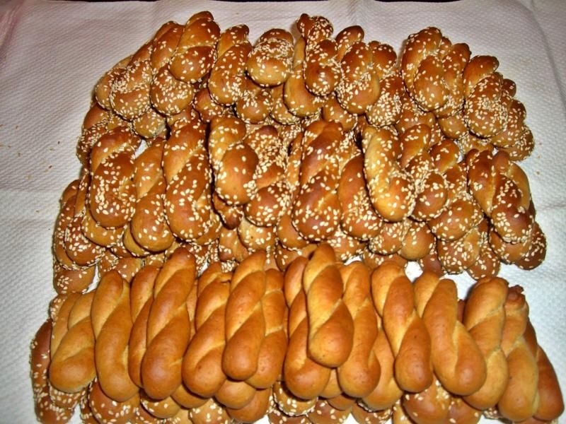 Σε ένα βαθύ μπολ βάζουμε τα λάδια με τη ζάχαρη και τα χτυπάμε μέχρι να γίνουν κρέμα. Κατόπιν προσθέτουμε τον μουστο, τον χυμό πορτοκαλιού όπου μέσα έχουμε προσθέσει τη σόδα, ρίχνουμε τα μυρωδικά και προσθέτουμε το αλεύρι ανακατεμένο με το μπέικιν. Ζυμώνουμε μέχρι να έχουμε μια μαλακή, εύπλαστη ζύμη. Την αφήνετε τουλάχιστον για μια ώρα να δέσουν τα υλικά Πλάθουμε κουλουράκια σε σχήμα και τα ψήνουμε στους 180 βαθμούς αέρα για 20 - 30 λεπτά περίπου.