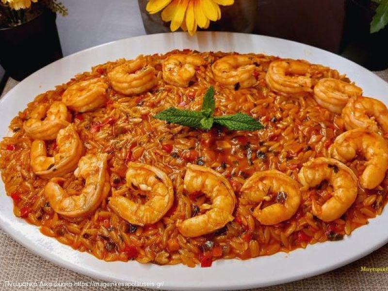 Κριθαράκι με Γαρίδες και Λαχανικά.
