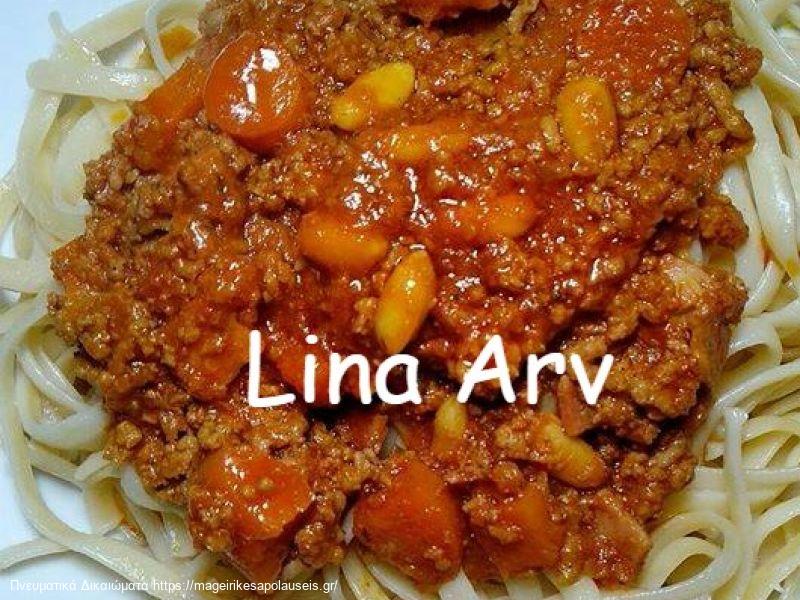 Μακαρόνια με κιμά, μπέικον και κουκουνάρι της Λίνας