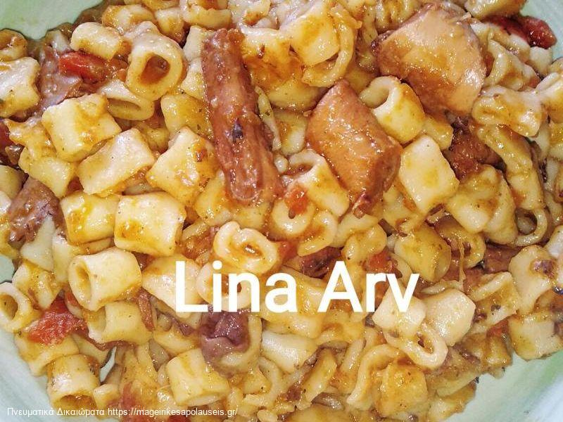 Στη συνέχεια ρίχνουμε το μίγμα από το τηγάνι στο νερό που βράζει, δοκιμάζουμε το αλάτι και τώρα κρίνουμε αν πρέπει να αλατίσουμε επιπλέον ή δεν χειάζεται επειδή το χταπόδι βγάζει αρκετή αλμύρα. και προσθέτουμε και το κοφτό μακαρονάκι και βράζουμε για 10'. Κλείνουμε τη φωτιά - προσέχοντας να έχει αρκετό ζουμάκι το φαγητό μας - έτσι ώστε να μην λασπώσουν και κολλήσουν τα μακαρόνια μεταξύ τους. Κλείνουμε το καπάκι της κατσαρόλας για να απορροφηθούν τα υγρά.
