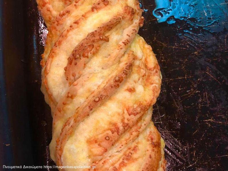 Μόλις είναι έτοιμη η ζύμη ανοίγουμε σε τετράγωνο φύλλο,ρίχνουμε τα τυριά ή τη φέτα ή τη μερέντα αν το κάνουμε γλυκό και τυλίγουμε σε ρολό!