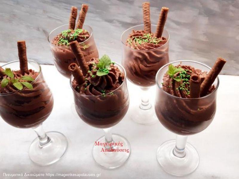 Χτυπάμε στο μίξερ την κρεμα να γίνει μια πηχτή σαντιγί κόβουμε κομματάκια την σοκολάτας και βάζουμε σε μπολ με το ηλιέλαιο βάζουμε στα μικροκύματα για ενάμιση λεπτό η σε Μπεν Μαρί να λιώσει και ανακατευουμε την σοκολατα με την μερεντα να πεσει η θερμοκρασια. Ανακατεύουμε σιγά σιγά την σοκολάτα με την σαντιγί και βάζουμε στο ψυγείο μετα από 20 λεπτά κατάψυξη το γλυκάκι είναι έτοιμο σερβίρετε και βάζετε πάλι ψυγείο συντήρηση.