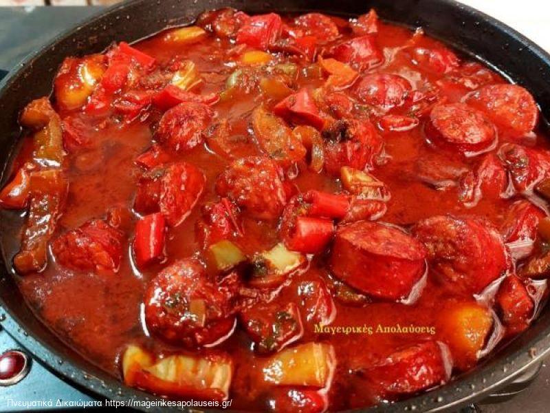 Σπετσοφάι με χωριάτικο λουκάνικο πιπεριές & τυρί φέτα.
