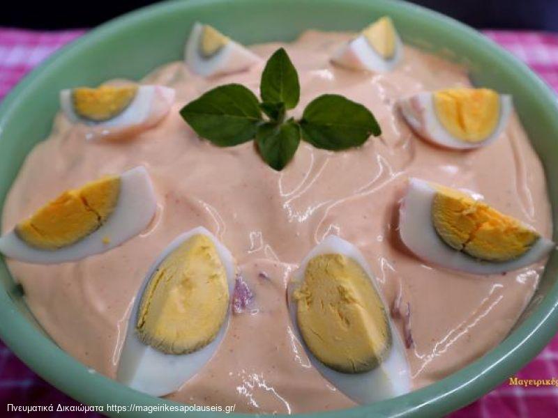 Βάζουμε να βράσουμε τα μακαρόνια με το αλάτι και δυο λίτρα νερό. Τα βράζουμε για 7-8 λεπτά. Τα βάζουμε σε ένα μπολ και αφήνουμε να κρυώσουν καλά. Ψιλοκόβουμε το ζαμπόν τρίβουμε το τυρί στο χοντρό του τρίφτη και καθαρίζουμε τα αυγά που κόβουμε στα τέσσερα. Βάζουμε την μαγιονέζα την κέτσαπ ανακατεύουμε και αρχίζουμε το στήσιμο. Ρίχνουμε το τυρί το ζαμπόν και από επάνω καλύπτουμε με την μαγιονέζα. Διακοσμούμε με τα αυγά και λίγα φύλλα φρέσκα ρίγανης.279305685 10220838660141540 4295527337828100337 n